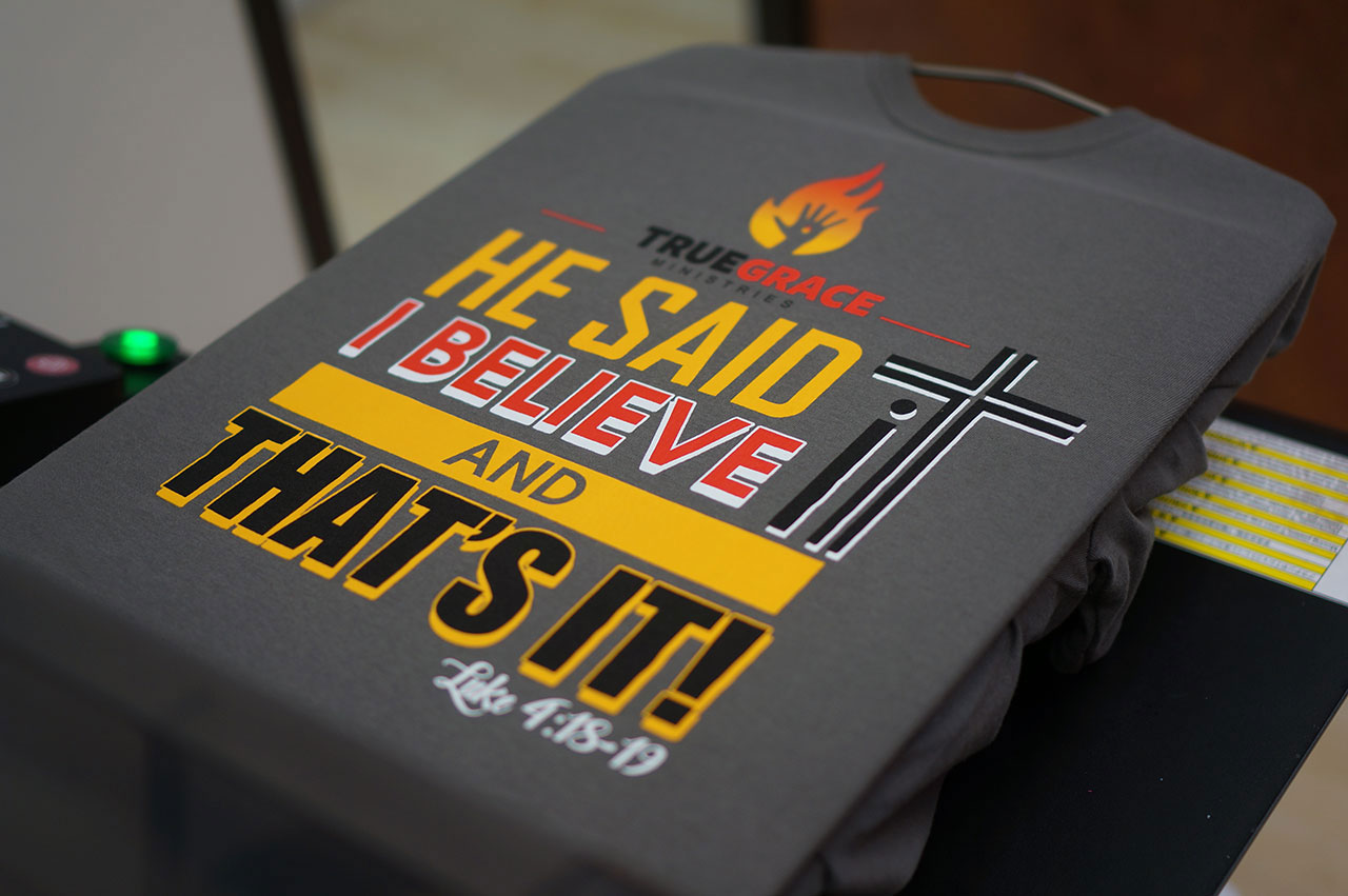 Direct to Garment Printing offers fast printing with multiple color design with no minimum.